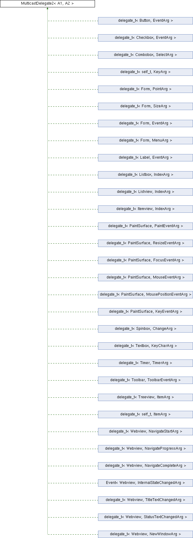 Inheritance diagram for MulticastDelegate2< A1, A2 >: